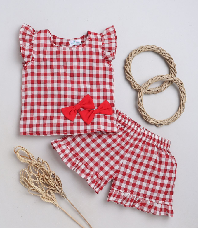 Red White Cotton Coord Set (Girls)