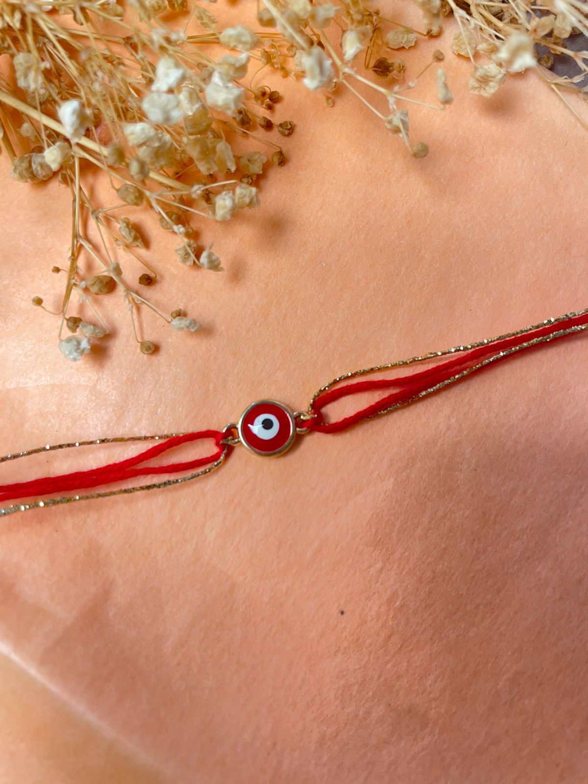 Red Evil Eye Rakhi – Protection with Style Celebrate the bond of love and protection this Raksha Bandhan with our beautifully handcrafted Red Evil Eye Rakhi. Designed with the powerful evil eye symbol, this rakhi is believed to ward off negative energies and bring good fortune to your brother. The striking red thread symbolizes love, strength, and protection, while the central evil eye charm adds a modern and meaningful touch. Made with premium materials, this evil eye rakhi ensures both durability and comfort, making it perfect for your brother to wear all day long. Whether you're sending rakhi online or tying it in person, this protective rakhi is sure to make a statement.